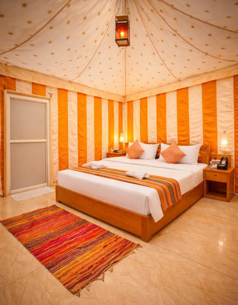 Soak in the enchanting beauty of the Thar Desert at our desert camps, complete with traditional decor and cultural programs.